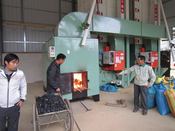图为振龙农机合作社烘干生产线点火投产现场 2014年11月9月,桂平振龙农机合作社烘干生产线点火投产。