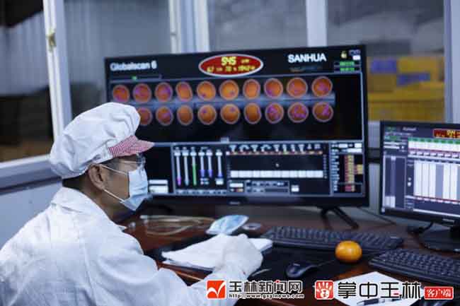 “今天陆续分拣的是从周边农户保价回收的沃柑。我们根据沃柑的糖度、瑕疵、规格等方面实现精细化分选。” 博白县三桦石柳生态农业开发有限责任公司研发部经理王健告诉记者,该公司2019年引进使用的法国迈夫诺达水果分选设备目前在国内处于领先,最多可实现每小时6吨沃柑的分选。