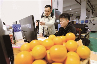 电商服务人员在网络上销售金桔