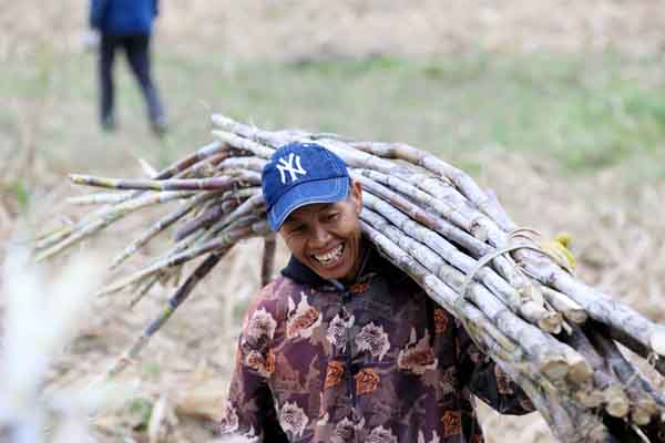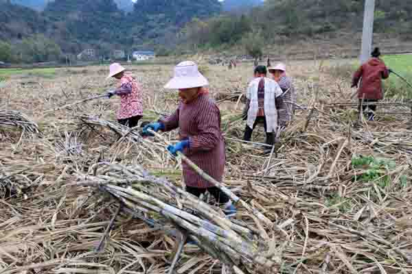 3月3日,在广西柳州市融安县东起乡良村村,农民把砍收的甘蔗扛出蔗田,准备进厂压榨。早春时节,广西柳州市融安县正值春耕生产的大好时期,当地各族群众抢抓农时,利用气温回升,晴好天气的有利时机,抢收甘蔗,确保及时进厂压榨,确保蔗农有稳定收入。