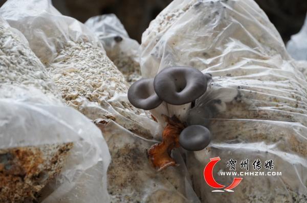 图为何彰江新建大棚基地内种植的秀珍菇。