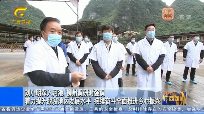 4月9日至12日,自治区党委副书记刘小明深入河池市、柳州市调研乡村振兴、产业发展情况。他强调,要深入学习贯彻习近平总书记重要讲话精神,大力弘扬脱贫攻坚精神,上下同心、乘势而上,着力提升脱贫地区发展水平,接续奋斗全面推进乡村振兴,加快实现农业农村现代化。