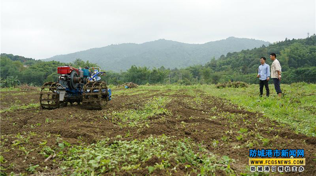 近日,防城区那良镇大村村防城区茂峰合作社的一处芋苗种植园,村民们正在围观一台拖拉机在耕地,只见拖拉机“突突突”的在耕地,却没看见有人在驾驶。原来这是一台无人驾驶的拖拉机,是合作社最近引进的。