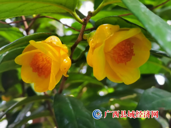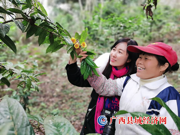 在桐棉镇那卜村,该县通过引进企业,采用“公司+合作社+基地+农户”的经营模式,利用那卜村丰富的林下、荒山、荒地,大力发展林下套种金花茶产业,连片种植了5000多亩60多万株金花茶。目前,该种植基地已成为广西最大的天然林下仿野生种植金花茶的基地。
