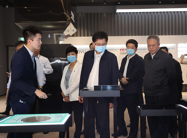 5月22日,自治区主席蓝天立来到成都临空经济示范区芯谷展示中心,认真听取示范区规划、建设等情况介绍。梁凯昌/摄