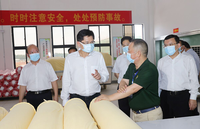 6月22日,自治区主席蓝天立来到位于中国(贵港)纺织服装时尚新区的广西世纺投资集团有限公司调研,他鼓励企业发挥龙头带动作用,积极推动纺织服装产业转型升级和跨越发展。梁凯昌/摄