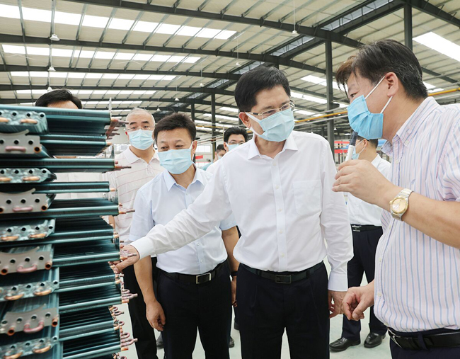 6月22日,自治区主席蓝天立来到位于梧州市的广西盈田创旺智能科技有限公司年产150万套高效节能空调生产项目调研时要求,积极推进企业技术改造,提升产业链现代化水平。梁凯昌/摄