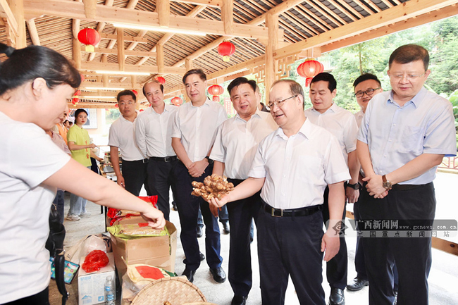 贺州6月23日讯(记者 陈贻泽)6月22日至23日,自治区党委书记、自治区人大常委会主任鹿心社深入贺州市,就推动产业高质量发展、巩固脱贫攻坚成果、加快推进乡村振兴等工作进行调研。鹿心社强调,贺州要深入贯彻落实习近平总书记视察广西时的重要讲话和重要指示精神,主动对标对表“四个新”总要求和四个方面重要工作要求,对“十四五”发展目标、重点任务、思路举措进行再研究、再梳理、再优化,进一步解放思想、改革创新、扩大开放、担当实干,发挥优势、突出特色、全力东融、加快发展,奋力实现“十四五”良好开局。