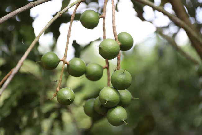 坚果挂满枝头,像一颗颗碧绿的宝石镶嵌在树上