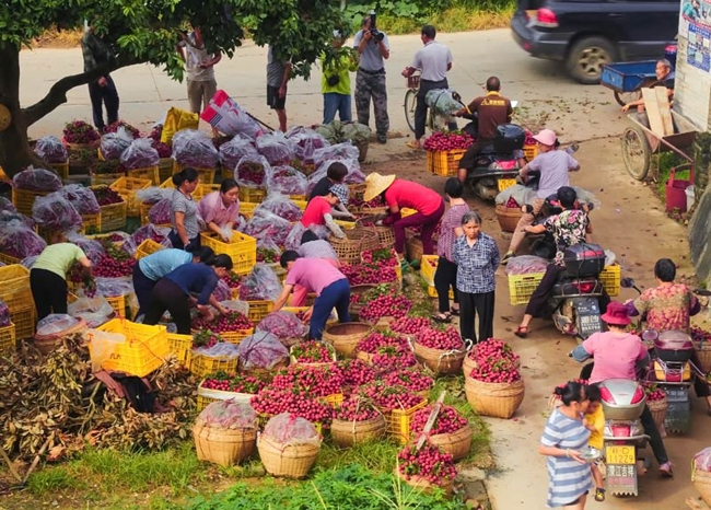 盛夏季节,藤县3.5万亩荔枝丰产丰收,全县产量约1.45万吨,果农乐开怀。近年来,该县水果部门推广高接换种新技术,对荔枝树进行品种改良,提升果实品质,提高卖价,特色种植成为当地果农增收的新途径。