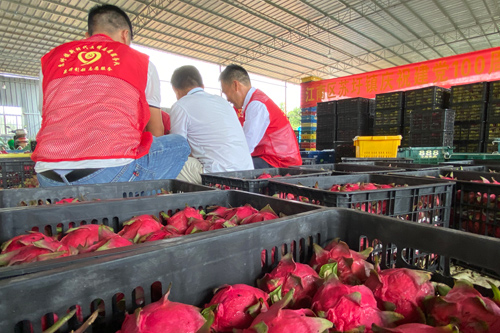 近日,一场暖心有意义的党员志愿服务活动在南宁市江南区苏圩镇镇宁村火龙果基地上演,由镇包村组、镇宁村党员村干带头组成的志愿服务队一大早就穿梭在红绿相间的火龙果基地,开摘今年第一批火龙果,剪果、装筐、装车、入库忙个不停……一派热火朝天的丰收景象。