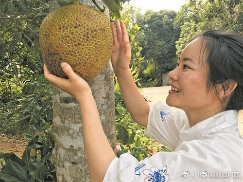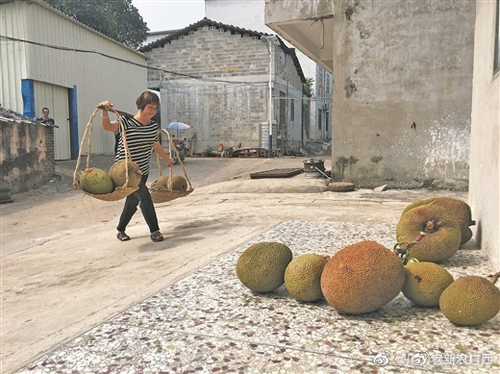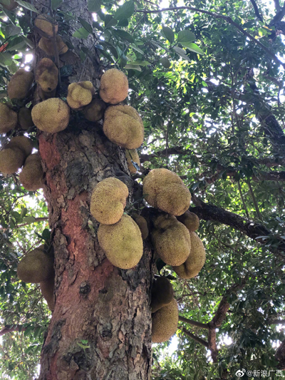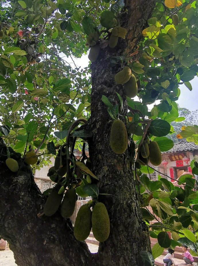 在广西,走进博白县沙河镇霞岭村天地屯,就能看见村里数十颗百年以上的菠萝蜜树,还有满山的菠萝蜜。村前屋后,一棵棵菠萝蜜果树上挂满了果。 小小的天地屯因有百年树龄的果树8棵,声名在外。有一棵200多年树龄的菠萝蜜树,今年依旧硕果累累。百年老树果价更高。