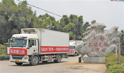 如何保证远方消费者能吃到新鲜的石硖龙眼?平南县投入60多万元,将镇隆镇洪氏果业仓库改造为5000多平方米的龙眼产地仓库,实行统一收购、统一销售,确保石硖龙眼的新鲜。同时,构建“网上交易、网下配送”的产销对接模式,该县272个行政村建立益农信息社,推动农业信息进村入户,确保网络全覆盖、服务无盲区、运营可持续,实现“网上下单,产地直供,当天发货、方便快捷”,让消费者在最短时间内吃上石硖龙眼。骆小敏说:“龙眼都是当天采摘、当天发货,通过冷链车、空运的方式配送,近的城市次日到达,远的城市像北京、青岛等,48小时内也能到达。”