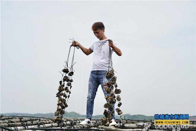 随着大蚝养殖规模的不断扩大,合作社为当地村民也提供了不少就业岗位。杨家荣介绍,接蚝饼、收蚝、上货等各个阶段都需要工人。“现在每天都有十几名工人在合作社的蚝排上做工,每人每天约有300元的收入。”杨家荣说。