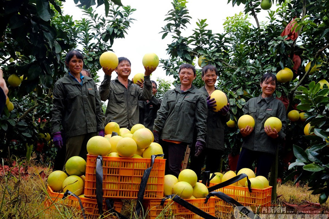 过去乐勇村村民主要种植玉米、香蕉等,效益不明显,黄叶病等逐渐成为村民腰包鼓起来的拦路虎。后来,乐勇村转变思路,通过流转土地大力种植三红蜜柚特色水果,并以公司+农户的模式,提供种苗、农资以及技术指导与培训一条龙服务,带动100余户人家种植三红蜜柚,每年能为村集体经济增加40万元。如今,三红蜜柚发展得越来越好,村级集体经济有了长流水,家底也越来越厚实。
