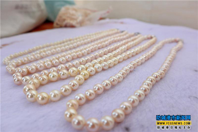 防城港白龙一带是养殖海水珍珠的好地方。近日,在防城区江山镇白龙村的意顺珍珠养殖场插核室里,养珠人胡永清忙着给工人结算工资,村民李群春领到1.4万元工资,满脸都是喜悦。