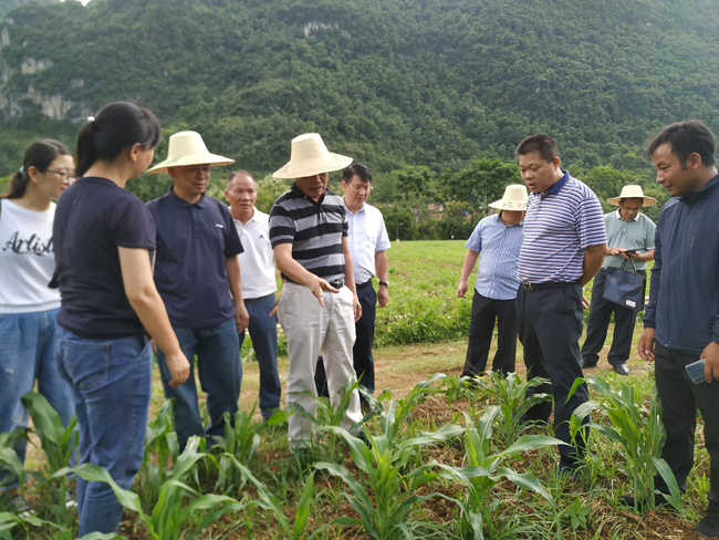 张述宽在百色市玉米研究所玉米科研基地调研指导