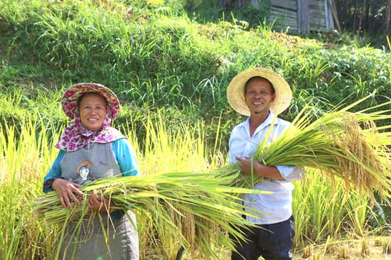 村民在收割水稻。 高武村的梯田。 高武村风貌。