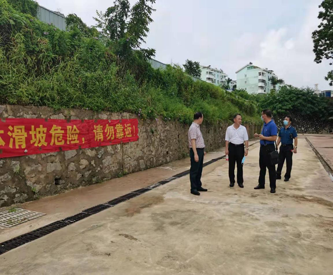 陆远万副主任在广西经贸职业技术学院查看后山山体滑坡隐患。
