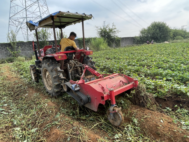 机器在割藤,方便后续翻挖红薯