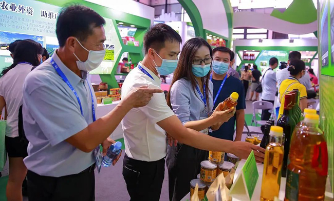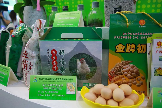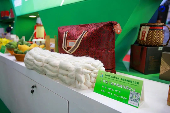 在展厅内,东兰花神丝绸有限公司的蚕丝被、东兰贵隆生态农业科技有限公司的秀珍菇脆礼、东兰切学乡龙潭种养专业合作社的鸡蛋、东兰江洞油茶农民专业合作社的油茶成为专业观众热捧的对象,许多专业观众在展品前驻足、询问,详细了解企业和产品的具体情况。