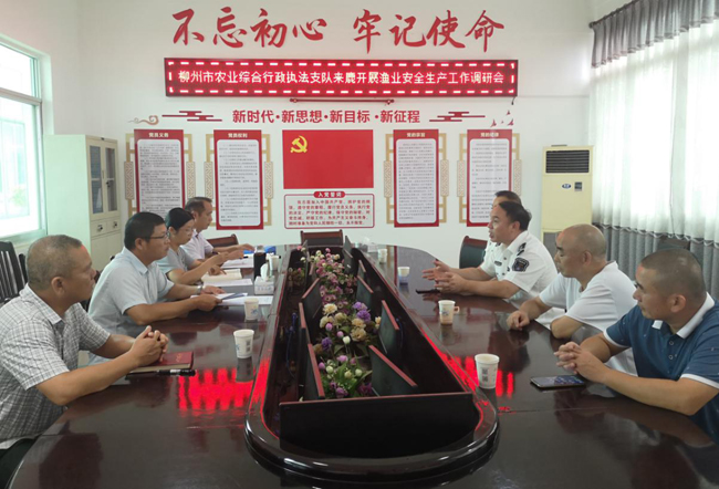 随着中秋、国庆等节假日临近,近日,柳州市农业综合行政执法支队负责人唐春华率检查组到鹿寨县开展渔业安全生产工作督查检查,要求鹿寨县要时刻绷紧安全生产这根弦,守住安全生产这条“红线”,尽心尽力、尽职尽责,抓好工作落实,促进我县渔业安全健康发展。