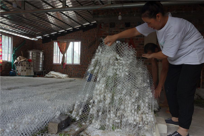 “李书记的到来,为我们解决了很多问题,少走了很多弯路。今年上半年,家中种桑养蚕8批次,收获蚕茧500多公斤,总收入达3万多元,收入与去年同期增收了两万多元。”北美庄的蚕农卢莫康说。