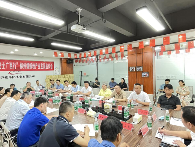 最后,院士团队一行和我市螺蛳粉生产企业、螺蛳粉原料供应企业进行座谈,针对目前我市螺蛳粉产业发展中遇到的问题进行交流。
