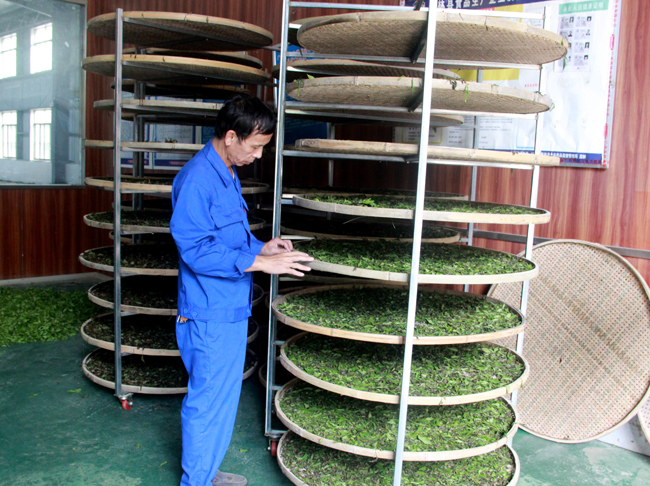 “我们一年收购生茶量在200万斤以上,年产出干茶约200吨,主要销往南宁横县等地,产值500多万元。”水头村源之蓝茶叶加工企业负责人李绍轮介绍,由于茶叶产量高,价钱好,销路畅通,乡亲们种茶收入不错,越来越多的年轻人都愿意留在家乡,既能照顾家中老小,又可以赚到钱,村里的人气越来越旺了。