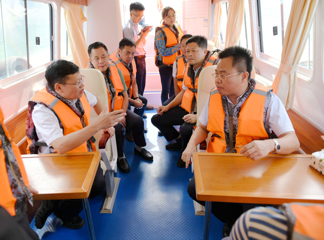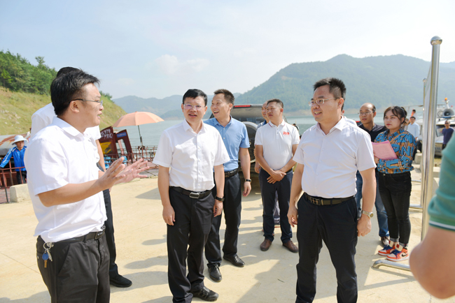 在马蚌镇那扛村坝桑码头调研万峰湖旅游区