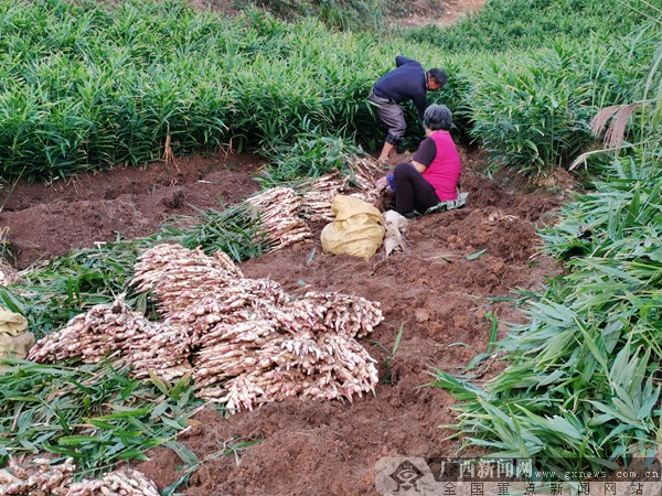 近日,荔浦市龙怀乡庆云村高山生姜种植达到1000多亩,其中脱贫户种植达200多亩,进一步巩固脱贫成果。