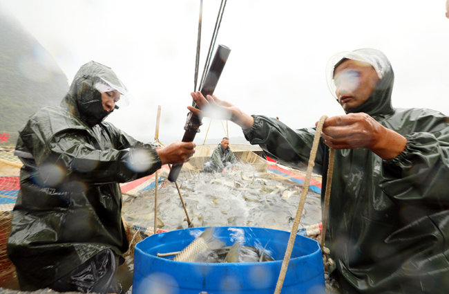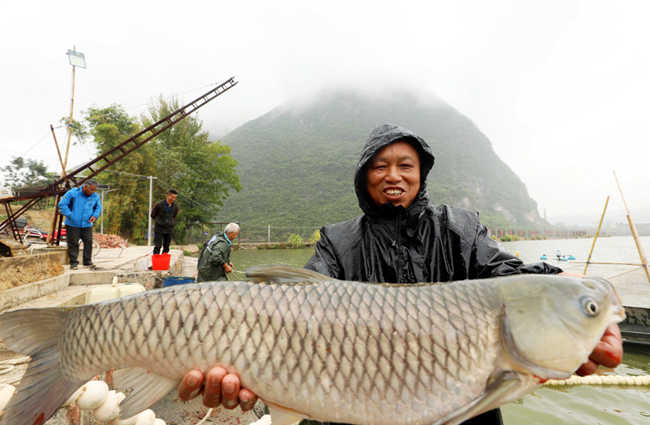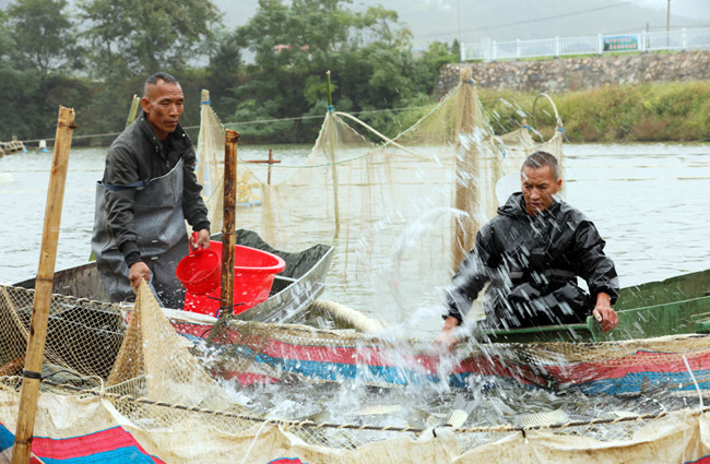 融安河边鱼喜获丰收。