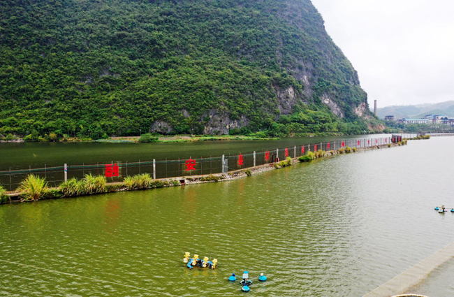 融安河边鱼养殖基地。