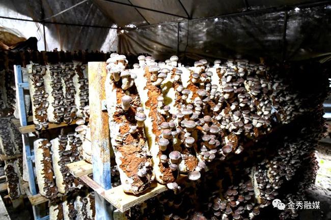眼下正值食用菌上市,金秀镇六段村的香菇也进入了丰产期。在六段村食用菌种植示范点,菇房大棚里排列着整整齐齐的菌棒,成簇成簇的香菇从菌棒中冒出,长势良好。