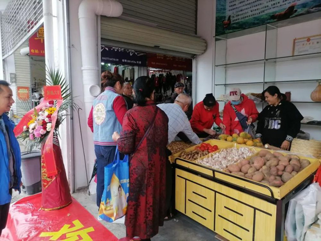 马山县扶贫农特产品直营店秀安店于近日开业,该店是马山县里当乡农特产品第四个直营店,是在里当社区后盾单位南宁建宁水务集团的帮扶下由里当乡瑶寨原生态种养专业合作社经营的,该店位于新安农贸市场大门,主要销售里当乡农副产品。开业第一天,人气十足,各类农特产品琳琅满目,有土猪肉,马山黑山羊,里当鸡生鲜类,还有农家黑豆,黄豆,玉米头等干货类,吸引众多市民前来挑选购买,第一天销售营业额就达到一万八千多元。