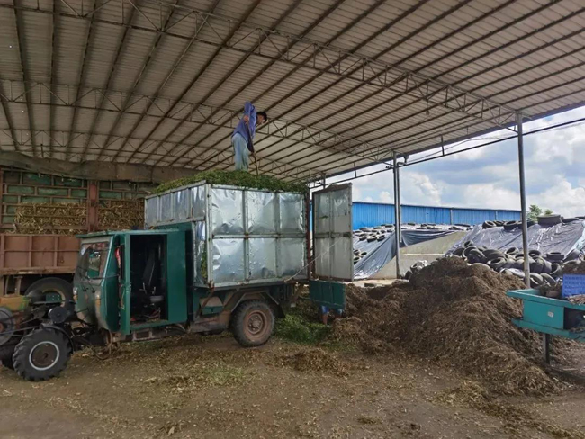 上午七点半,刘圩镇刘圩村村民郭际先早早来到田野牧歌肉牛产业示范区上班,第一道工序就是启动草料车,拉着前一天调配好的草料,挨个牛棚进行投喂。 一个小时过后,郭际先熟练地完成了15个牛棚的投喂工作。因为养牛基地已经全部实现了机械化运作,从草料调配到喂养,再到粪便清理,由他和另一名伙伴两人就能完成。