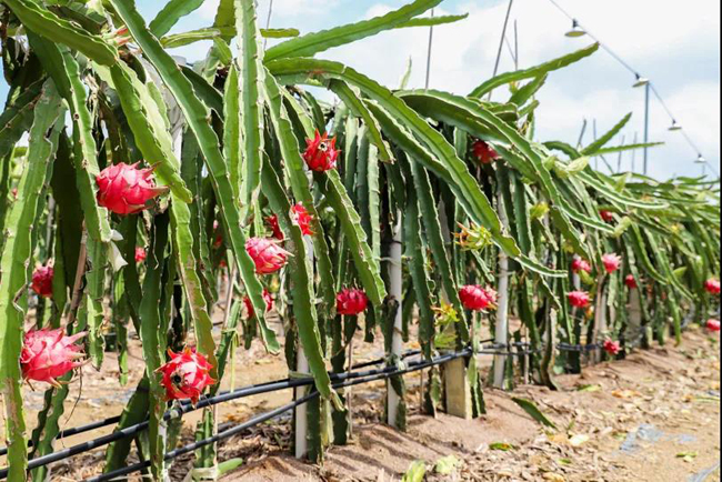 贵港市覃塘区旱地众多,适宜火龙果种植。覃塘区因地制宜,把扶持火龙果产业作为乡村振兴的重要产业来抓,出台政策扶持措施,提前谋划好土地预流转,并在通路、通水、通电等方面给予大力扶持,促进民间资本向火龙果产业集聚发展。