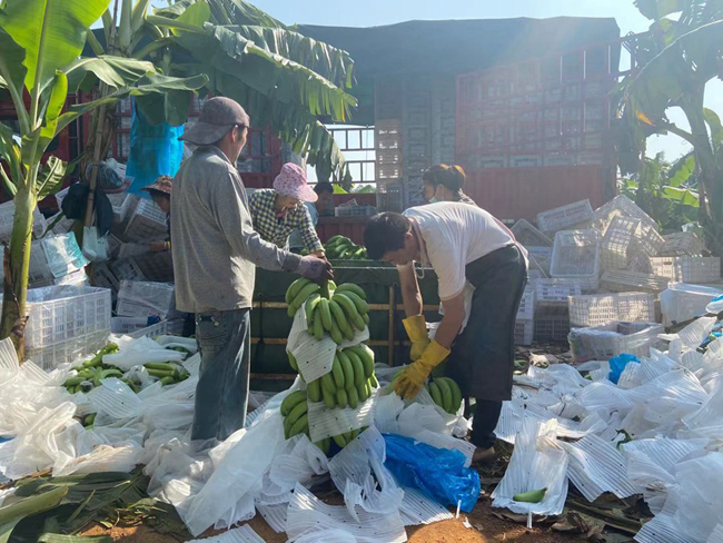 工人将香蕉打包入框