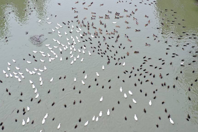 图为喂养生态鸭。