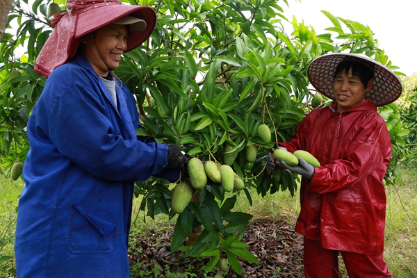 岜独村村民梁阿姨高兴地说:“今年基地芒果的产量蛮多的,我们种植芒果第六个年头了,今年收获芒果比前两年多,预计可摘收几十万公斤。”