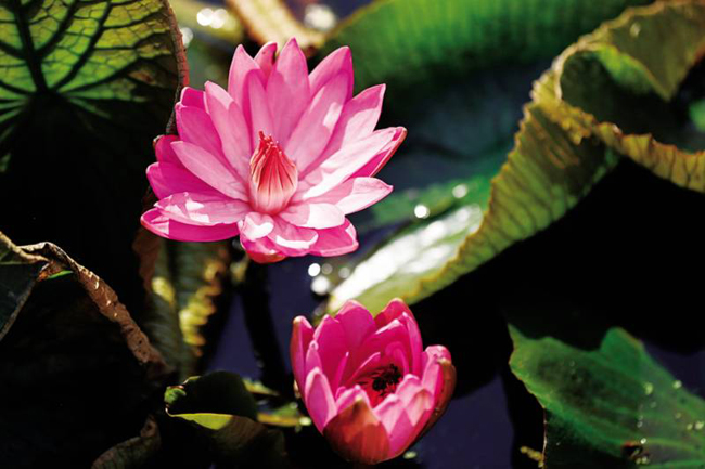 在冬日阳光的照耀下,广西柳州市柳江区百朋镇怀洪村近30亩九品香莲在荷塘里绽放。