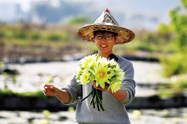 戴着草帽,手捧香莲,面对镜头……33岁的柳州小伙韦宝西决定在这里闯出一片天,追逐自己的梦想。