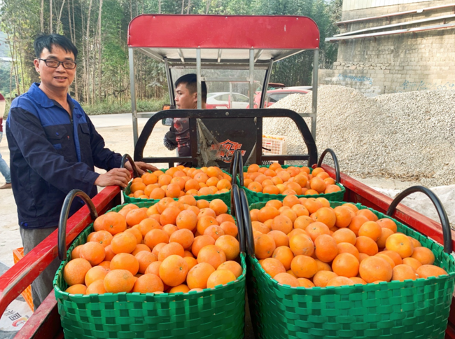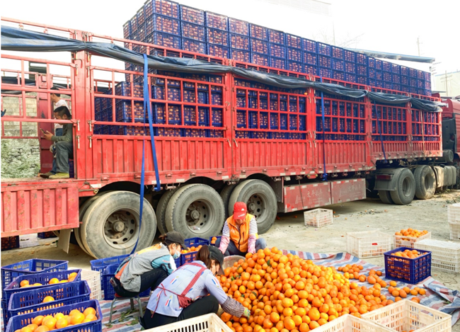 赖坡村果农陆国江和刚采摘装筐的沃柑。