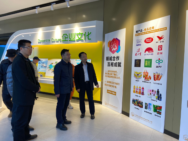 在上品荟食用菌生产基地、甜蜜家蜂业有限公司,韦贤康认真聆听企业负责人关于企业和产品情况的介绍,详细了解企业生产经营运行情况、发展现状、发展规划,仔细询问企业的现实需求。他指出,龙头企业是引领乡村全面振兴和农业农村现代化的生力军,是带动乡村产业高质量发展的重要主体。甜蜜家、上品荟公司充分发挥了自身的优势和影响力,为推动蜂蜜、食用菌产业高质量发展作出了表率。他强调,企业要加强技术创新,保持竞争优势,进一步扩大企业规模,推动上下游产业协同发展。持续发挥龙头带动作用,辐射联结更多合作社和农户,提升联农带农水平。甜蜜家要巩固提升广西特色农业现代化示范区(五星级)创建成果,促进一二三产业深度融合发展,上品荟要对照标准,积极争创广西特色农业现代化示范区。各级农业农村部门要主动担当、靠前服务,积极为企业破解具体问题、健康发展保驾护航。