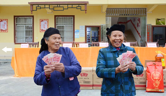 “今天领到大米和现金分红,我很开心!”柳班村板透屯脱贫监测户廖燕娥一边举着百元钞票,一边笑着说。