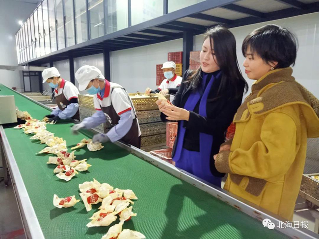 但由于养殖海鸭的蛋农大多是以个体户的方式单打独斗,质量把控和产量规划都做得不够,产量时高时低,制约了整个产业的健康发展。针对北海海鸭蛋产业实际情况,她希望在西场、沙岗等镇建立海鸭养殖基地,由大型海鸭蛋加工企业与农户对接,成立大型合作社,统一规划、统一养殖、统一销售,把海鸭蛋产业标准化,合力将北海海鸭蛋打造成为全国有名的优质农产品。目前该公司已在西场镇、闸口镇以“公司+合作社+农户”的方式建立了稳定的养殖基地,同时,在海鸭蛋销售大区东北等地建立了20多家企业合作点,进一步巩固和开拓海鸭蛋销售渠道。