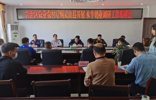 调研组指出,灵山县是奶水牛之乡,是我区水牛奶最大的奶源产区,多年来为灵山县农民致富、脱贫攻坚、乡村振兴作出了积极贡献。日前,自治区出台了《广西支持水牛奶业发展若干措施》,希望灵山抓住机遇,尽早成立工作专班,落实专人负责,重点发展适度规模化标准化的家庭牧场,鼓励龙头乳品企业发挥示范带动作用,推广“公司+合作社+家庭牧场”的发展模式,拓宽养殖规模;建立第三方检测机制,杜绝奶企垄断,引进多元化竞争,确保奶农权益,齐抓共管形成合力打造良好的奶源供应环境;同时,加快奶水牛种质资源更新,加大财政金融支持力度,强化水牛奶业发展的组织保障,打造具有广西地域特色的水牛奶产品品牌,推动广西水牛奶业健康快速发展。