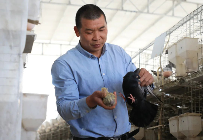 “2021年广利种养厂年产肉鸡6万羽,肉鸽1万多只,产值500多万元,销路不用愁,外地客商专门来到这里收购。”张德军说道。