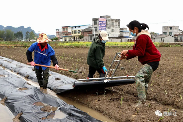 3月23日,记者走进位于成团镇江湾村的冬华种养专业合作社,看到农户们穿着长筒雨靴在田间地头忙碌,或平整苗床,或巧手栽苗,或铺膜护苗,大家三五成群,有条不紊地进行栽苗工作,一派热火朝天的劳作场景。