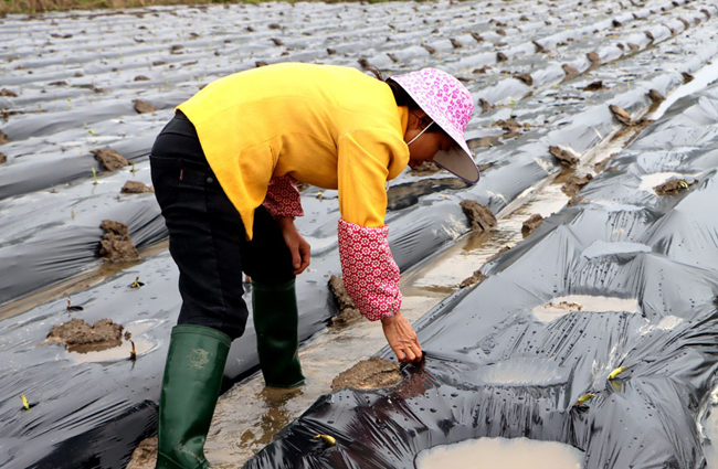 近日,走进位于成团镇江湾村的冬华种养专业合作社,看到农户们穿着长筒雨靴在田间地头忙碌,或平整苗床,或巧手栽苗,或铺膜护苗,大家三五成群,有条不紊地进行栽苗工作,一派热火朝天的劳作场景。